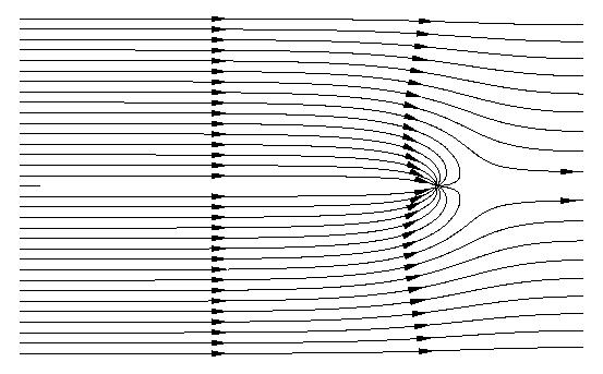 Áramvonalak a párhuzamos áramlásba helyezett nyelô