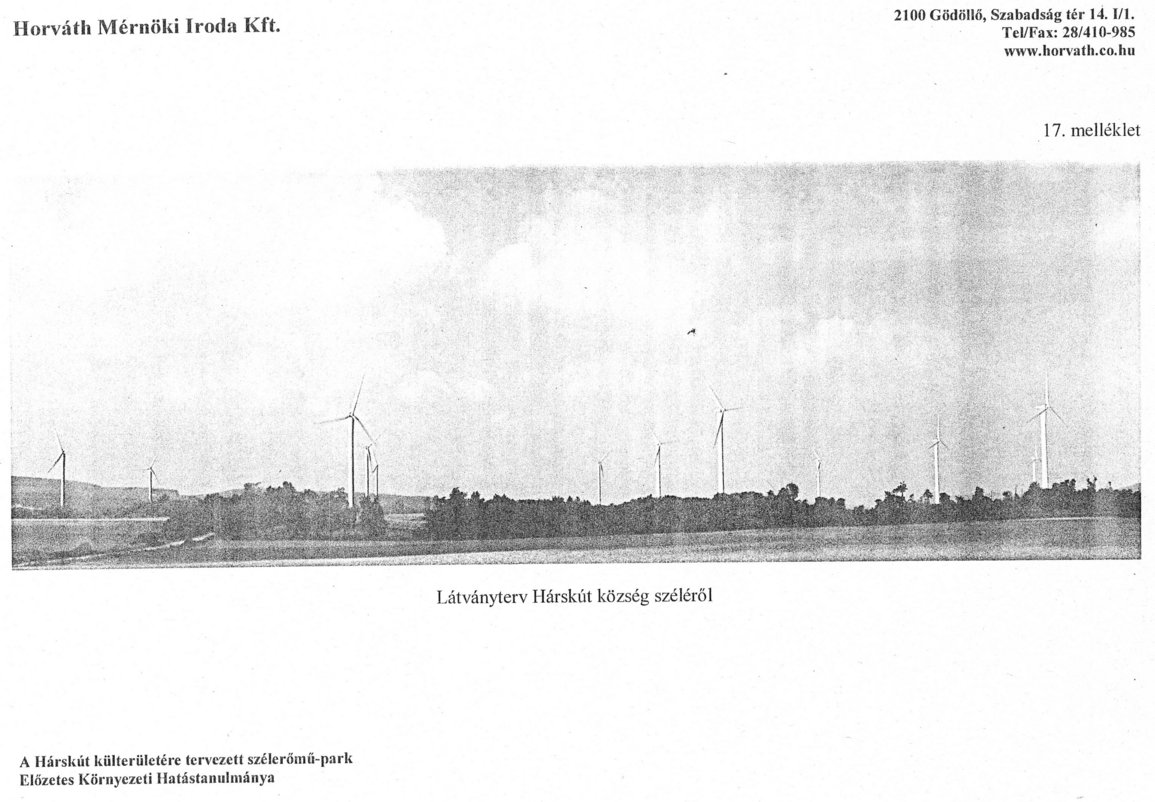 A látványtervekről. Egyetérthetünk abban, hogy semmi szükség nem lett volna az általunk elkészített látványtervekre, ha a beruházó idejében és korrekt méretezésű látványterveket tár a lakosság elé. Ezt csak a „Hiánypótlás”-ban tette meg. Az EKHT utolsó lapján azonban sajnos nem méretarányos toronyképeket sikerült ábrázolniuk. Minden, Hárskút környékét valóban ismerő helyi lakos láthatja, hogy az ábrázolt tornyok tövénél lévő fasor a valóságban max 15 méteres, vagyis az EKHT-ban ábrázolt tornyok 60-70 méter közötti magasságúak.